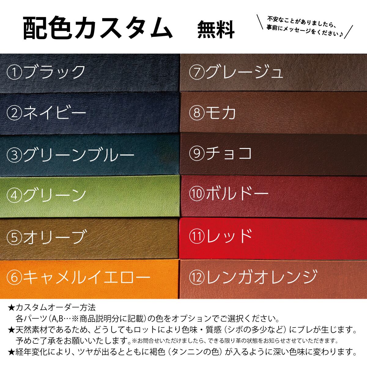 ★オイルレザーは12色からお選びいただけます。