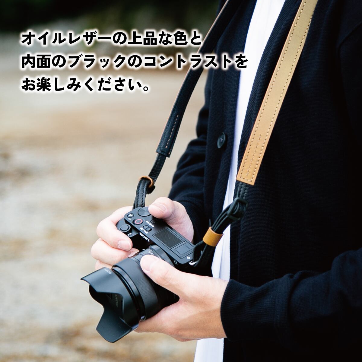 クールな表情と機能性を両立させたカメラストラップ