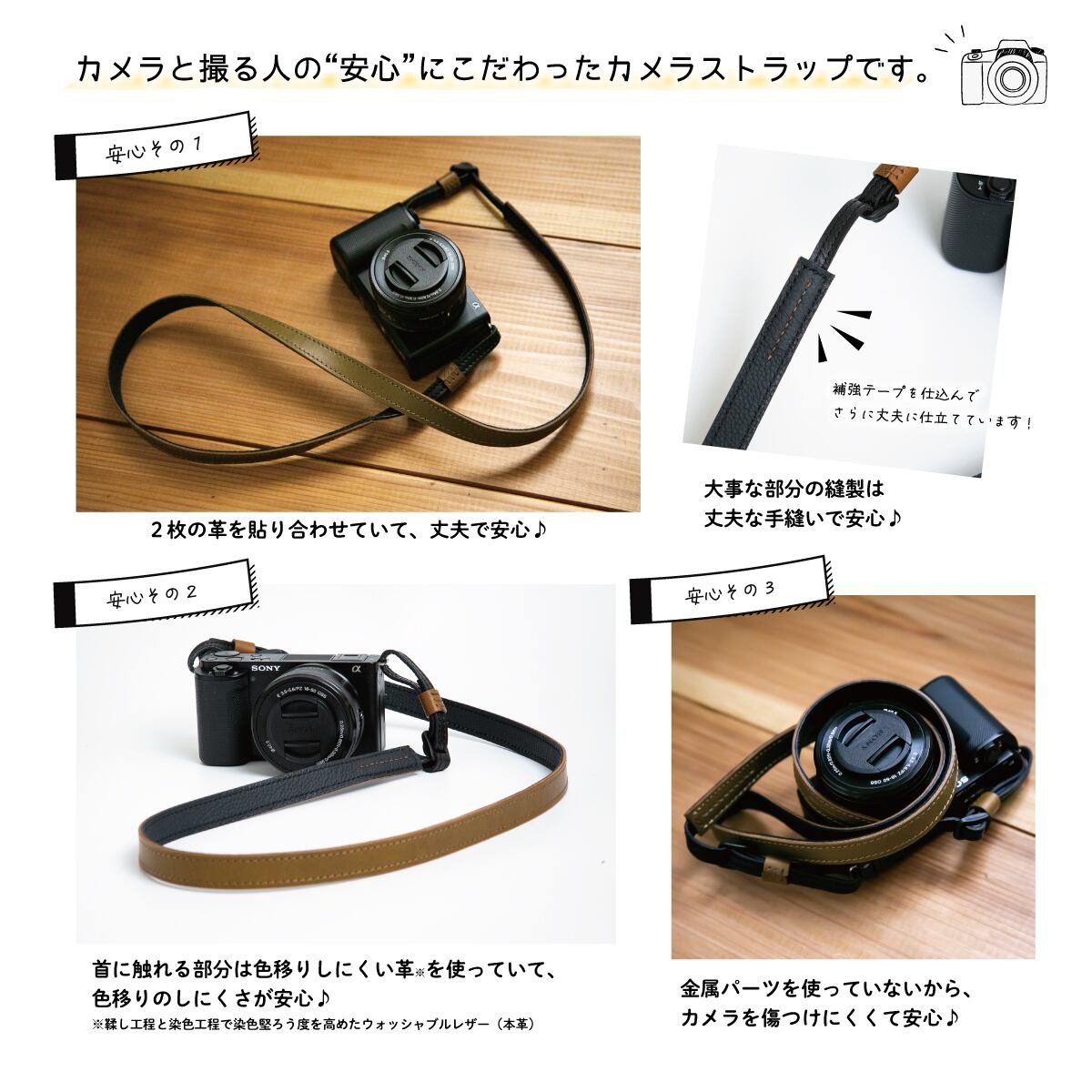 『カメラと撮影者にやさしい』ストラップでもあります。